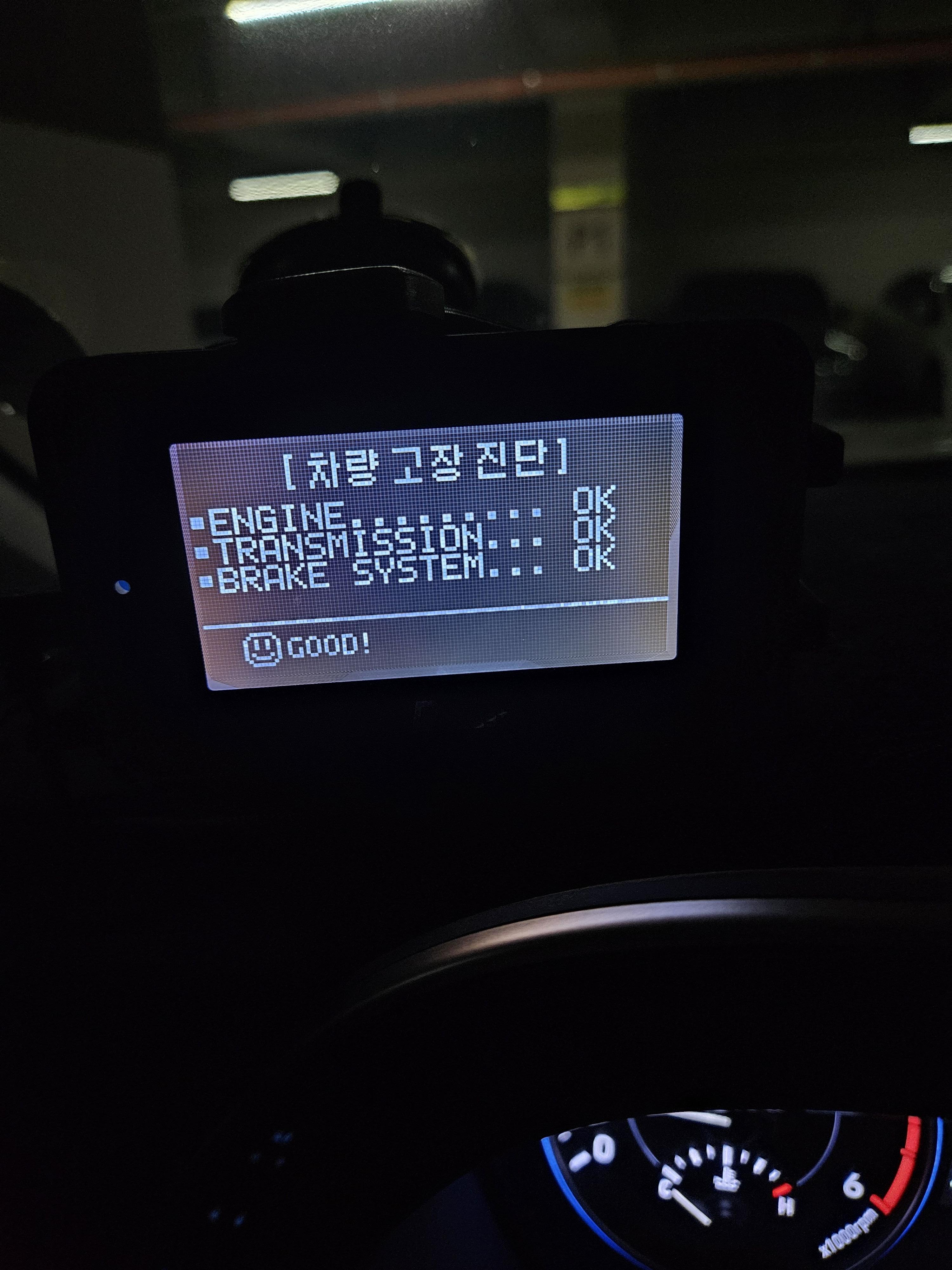 제 차량의 경우 엔진, 미션, 브레이크 모두 정상이라 코드가 잡히진 않았어요.