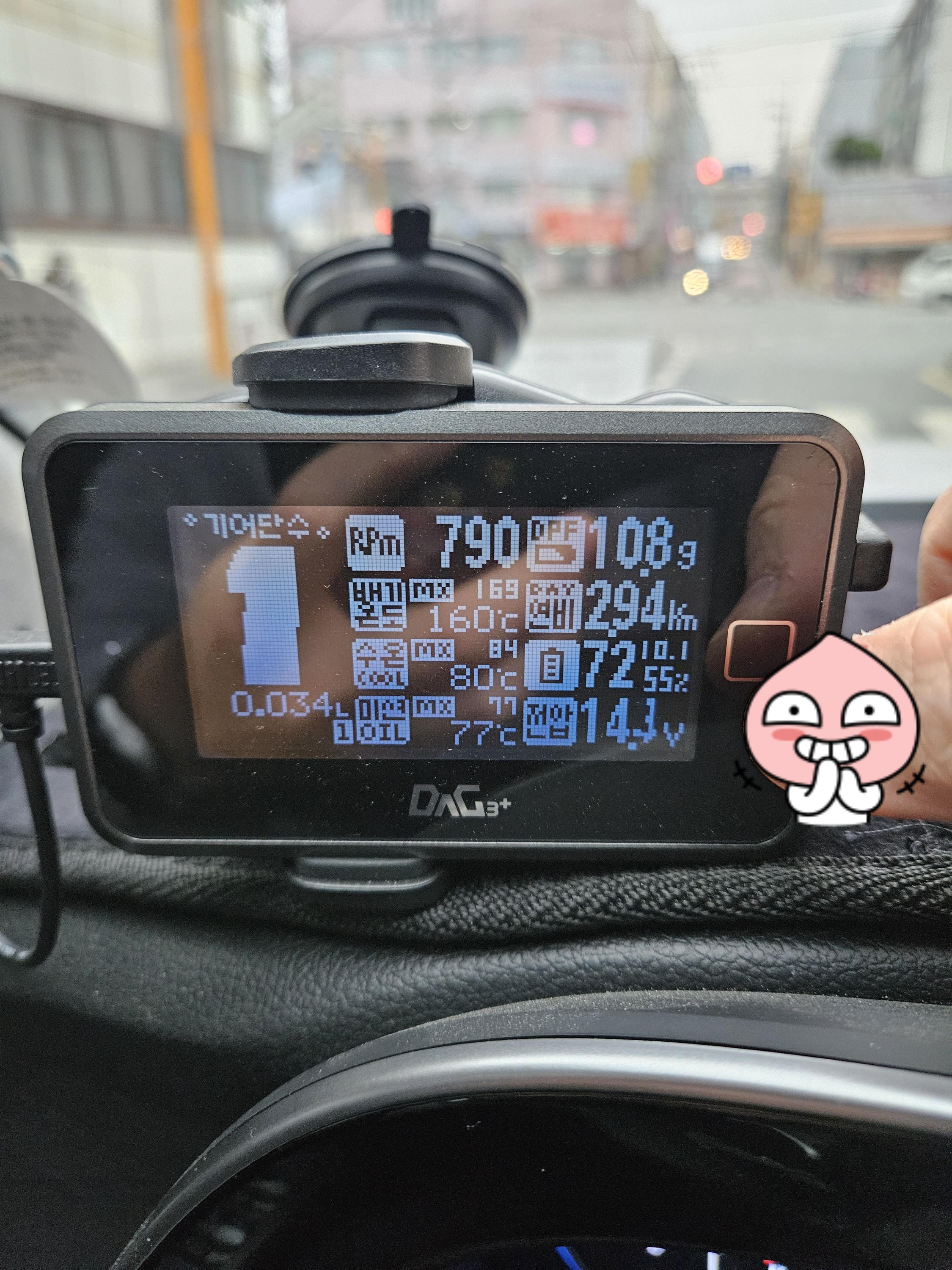 다만. 디젤이라 DPF를 보기 위해 항상 주행 중에도 시야에 들어오도록 설치했지만 디젤차를 타지 않는다면 폰으로 쉽게 확인가능한 '인포카' 제품을 쓸 거 같아요.